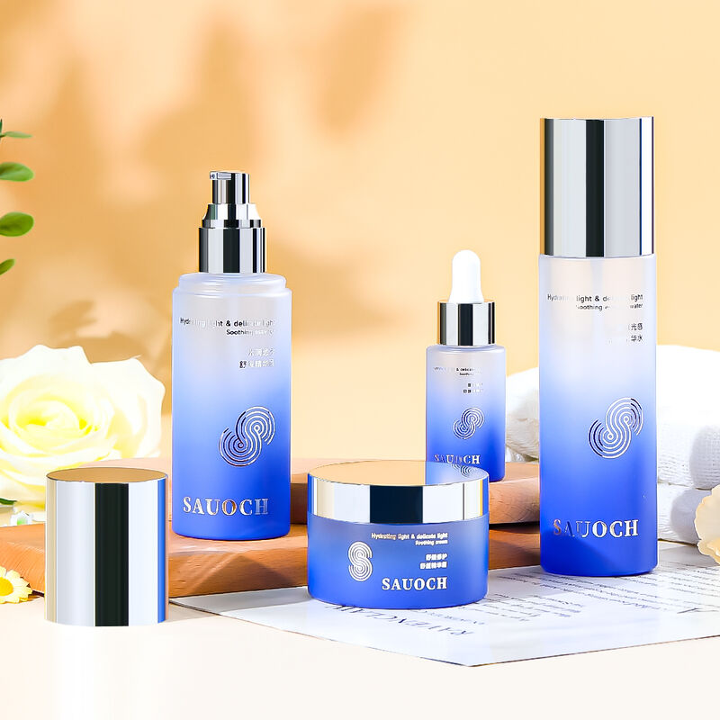 Met een stijlvolle blauwe glazuur en zilveren elektroplateerde doppen biedt deze verpakkingsset een premium uitstraling die de visuele aantrekkingskracht van huidverzorgingsproducten vergroot.